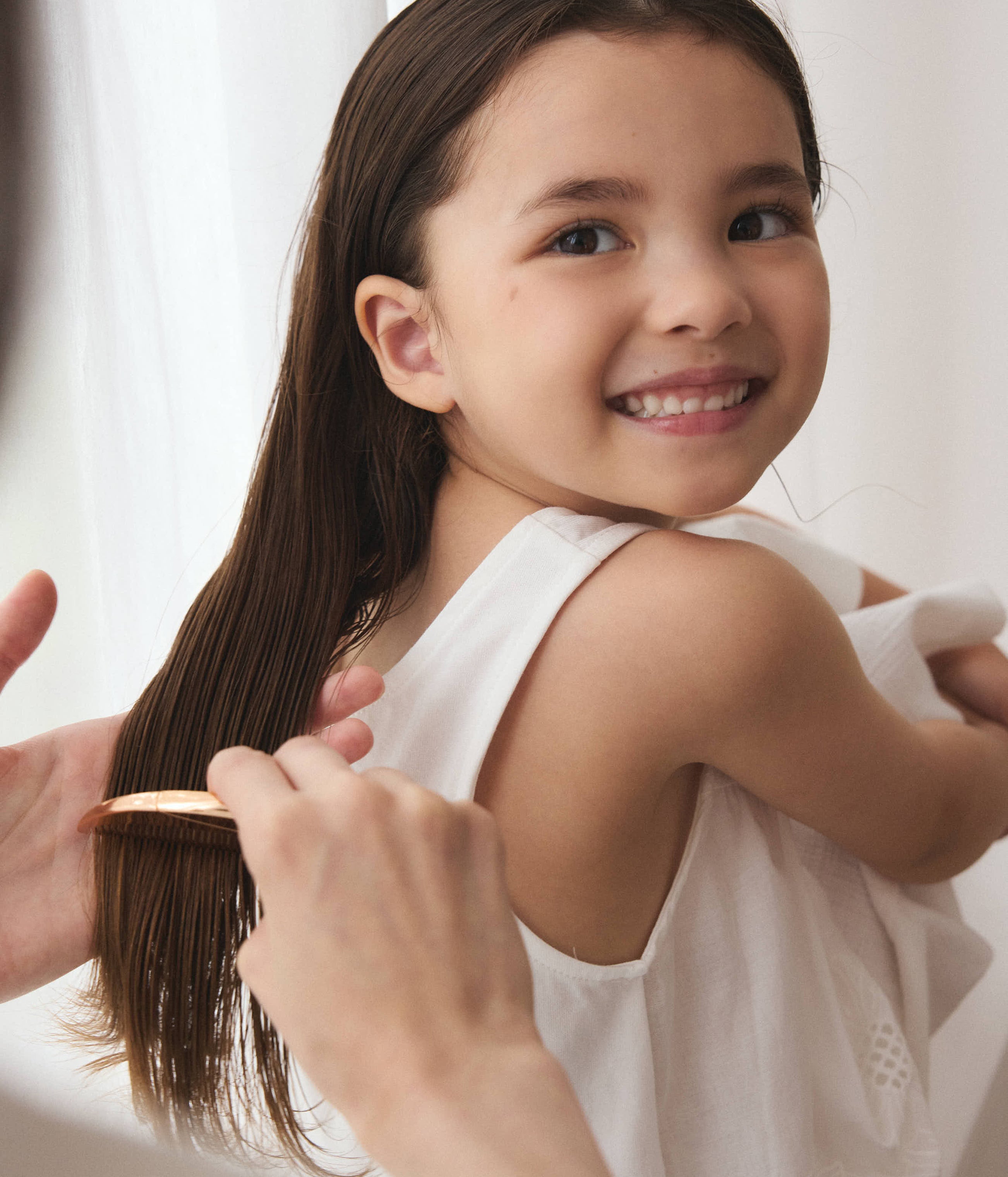 やさしく髪をとかします。