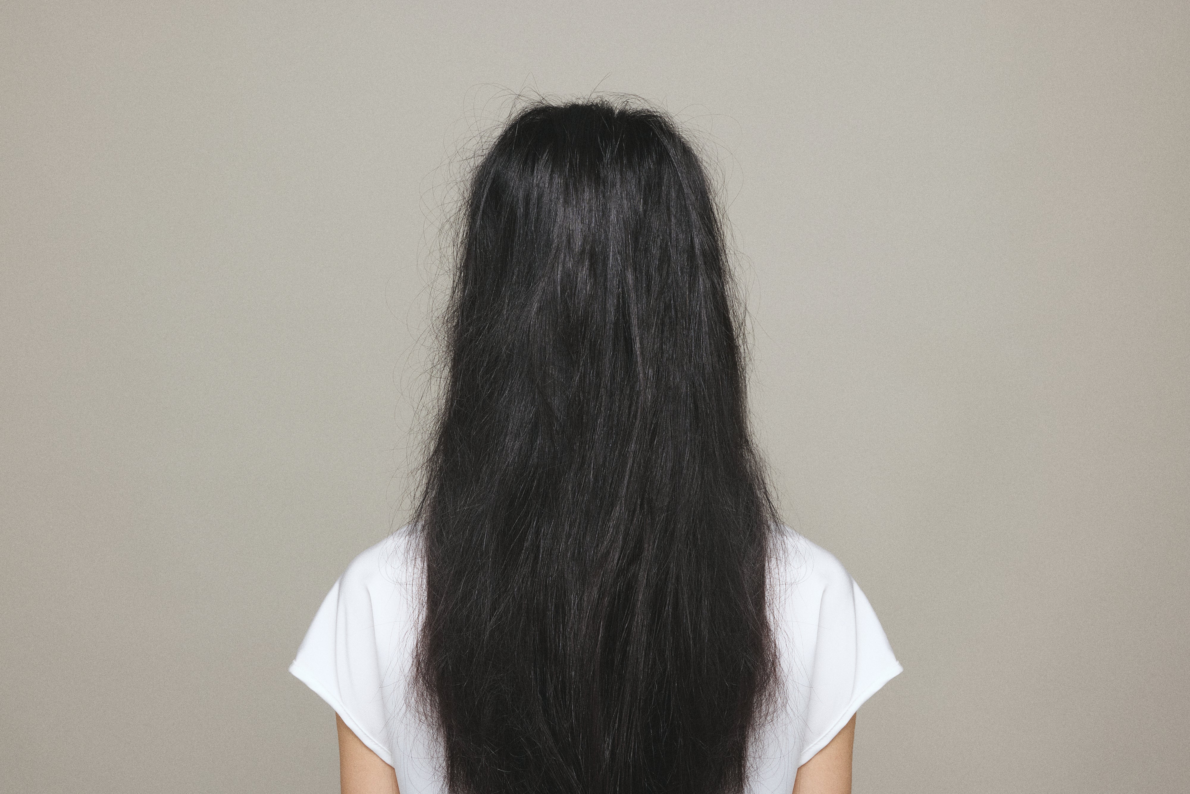 頭頂部側から毛先側に力を入れすぎないようゆっくりなでるように動します。