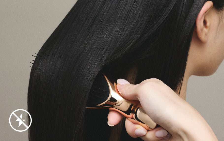 髪はプラスの静電気を帯びやすく、これが髪の広がりの原因となることがあります。ブラシ面から放出されるマイナスイオンが静電気を抑え、髪に潤いと艶をもたらします。